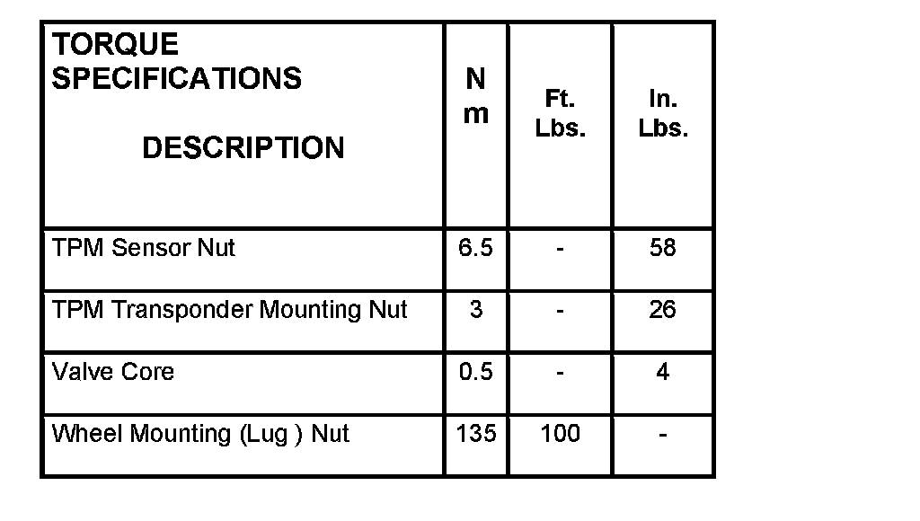 Torque Specifications: