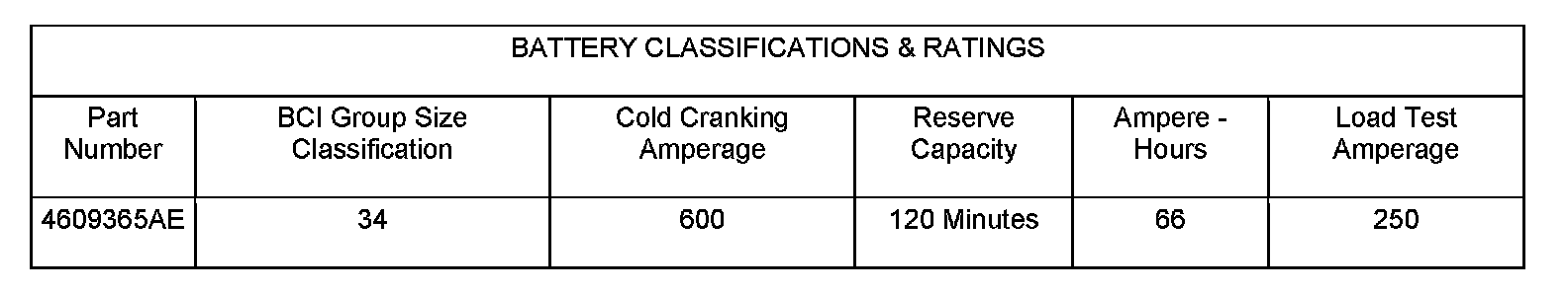 Battery: Specifications