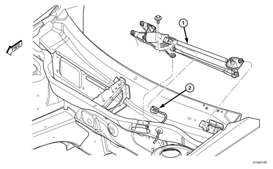 3. Connect the wiper motor electrical connector (2).