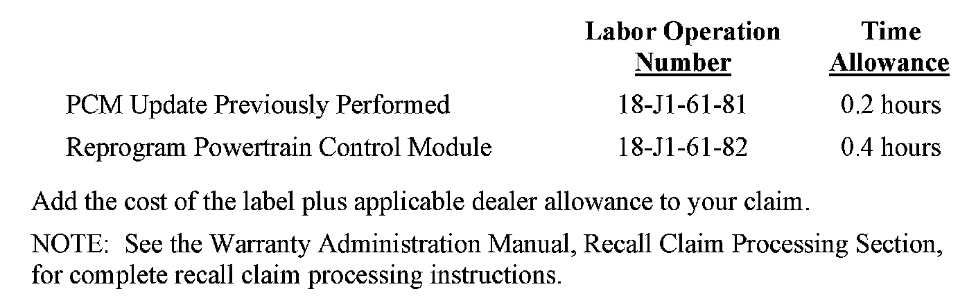 Recall - PCM Software Update For NOX Emissions: Overview