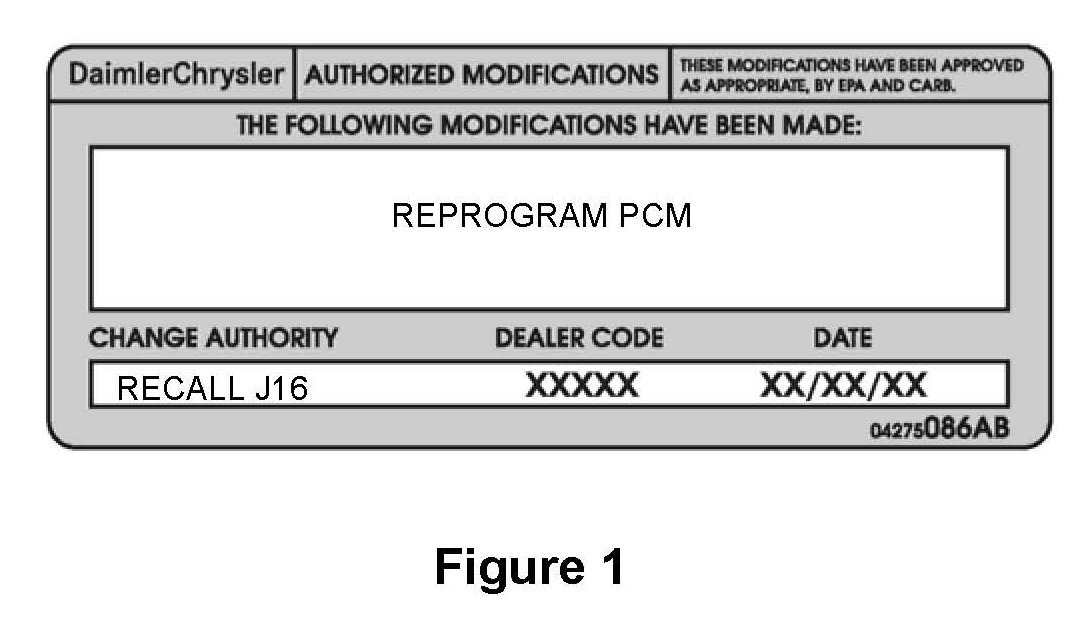 1. Type or print (with a ballpoint pen) the recall number, repair modification, dealer code and date on the Authorized Modifications Label (Figure 1).