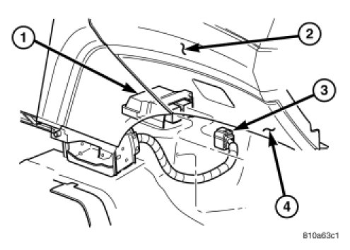 An arrow printed on the label on the top of the ORC housing provides a visual verification of the proper orientation of the unit, and should always be pointed toward the right side of the vehicle. Two molded plastic electrical connector receptacles exit the right side of the ORC housing. These two receptacles (referred to as C1 and C2 in the diagnostic information and wiring) connect the ORC to the vehicle electrical system through a dedicated take out and connector of the instrument panel wire harness, and a dedicated take out and connector of the airbag overlay wire harness. The ORC contains a second bi-directional safing sensor for the curtain airbags.