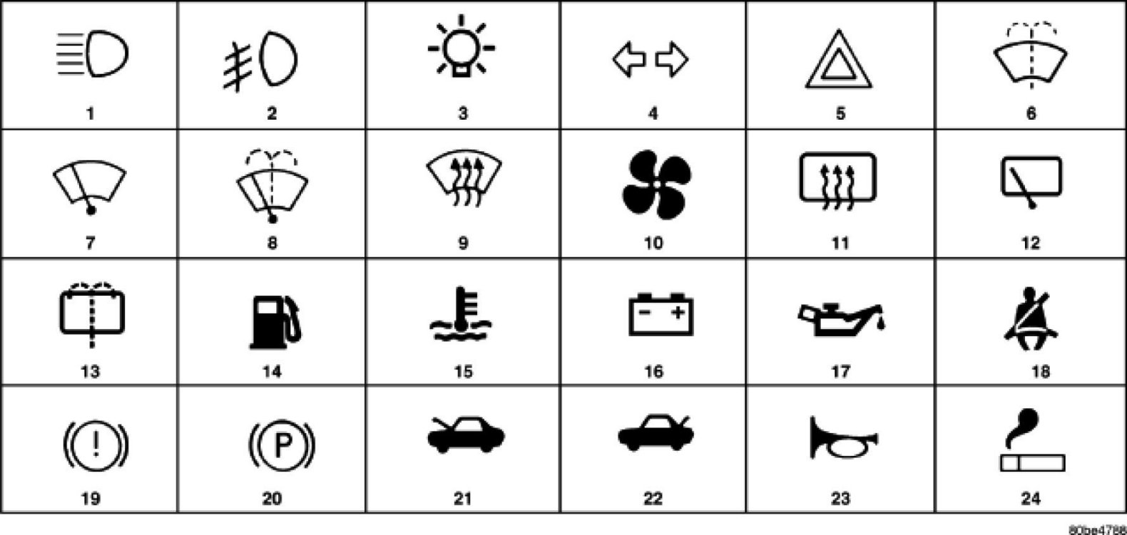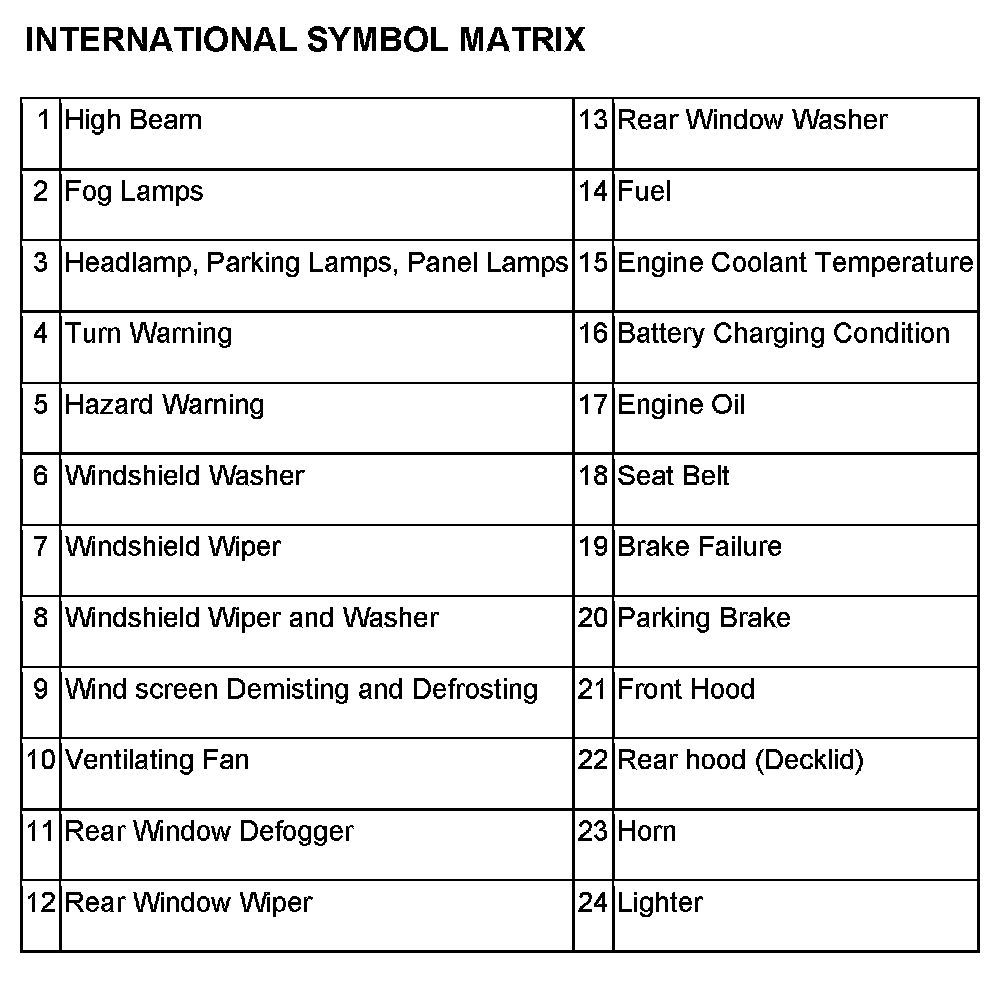 The graphic symbols illustrated are used to identify various instrument controls. The symbols correspond to the controls and displays that are located on the instrument panel.
