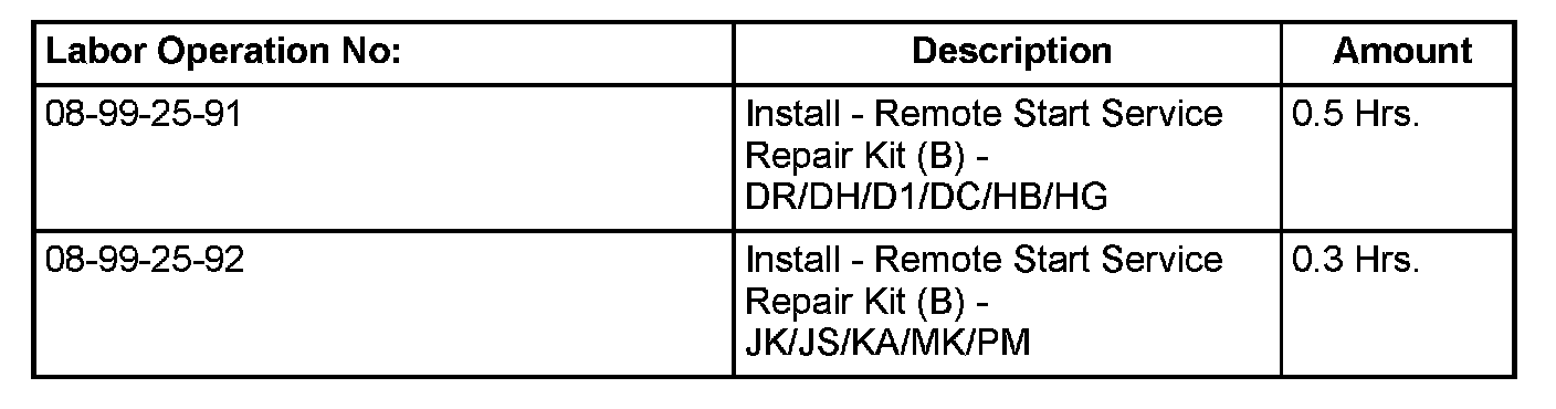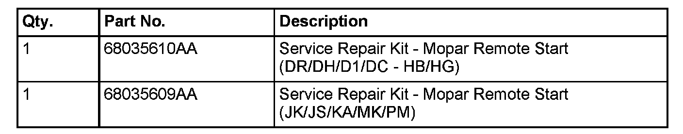 This bulletin involves the installation of a Mopar Remote Start System - Service Repair Kit.