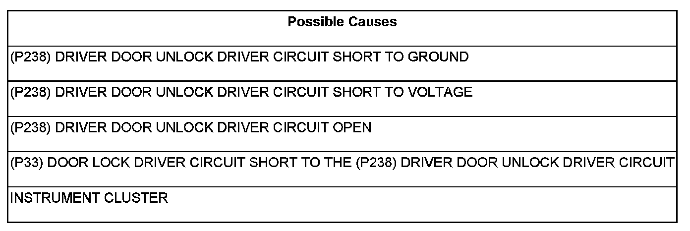 1.(P238) DRIVER DOOR UNLOCK DRIVER CIRCUIT SHORT TO GROUND