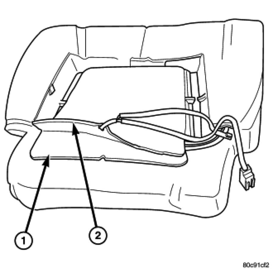 NOTE: Heated seat cushion shown, heated seat back similar.