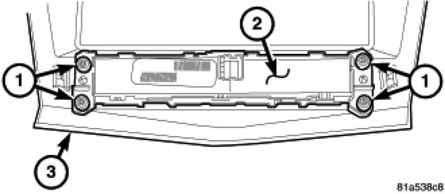 1. Position the ASBM (2) onto the back of the instrument panel center bezel (3).