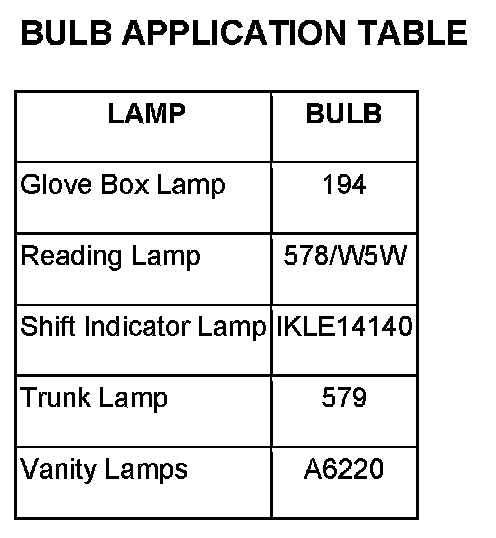 CAUTION: Do not use bulbs that have a higher candle power than the bulb listed in the Bulb Application Table. Damage to lamp can result.