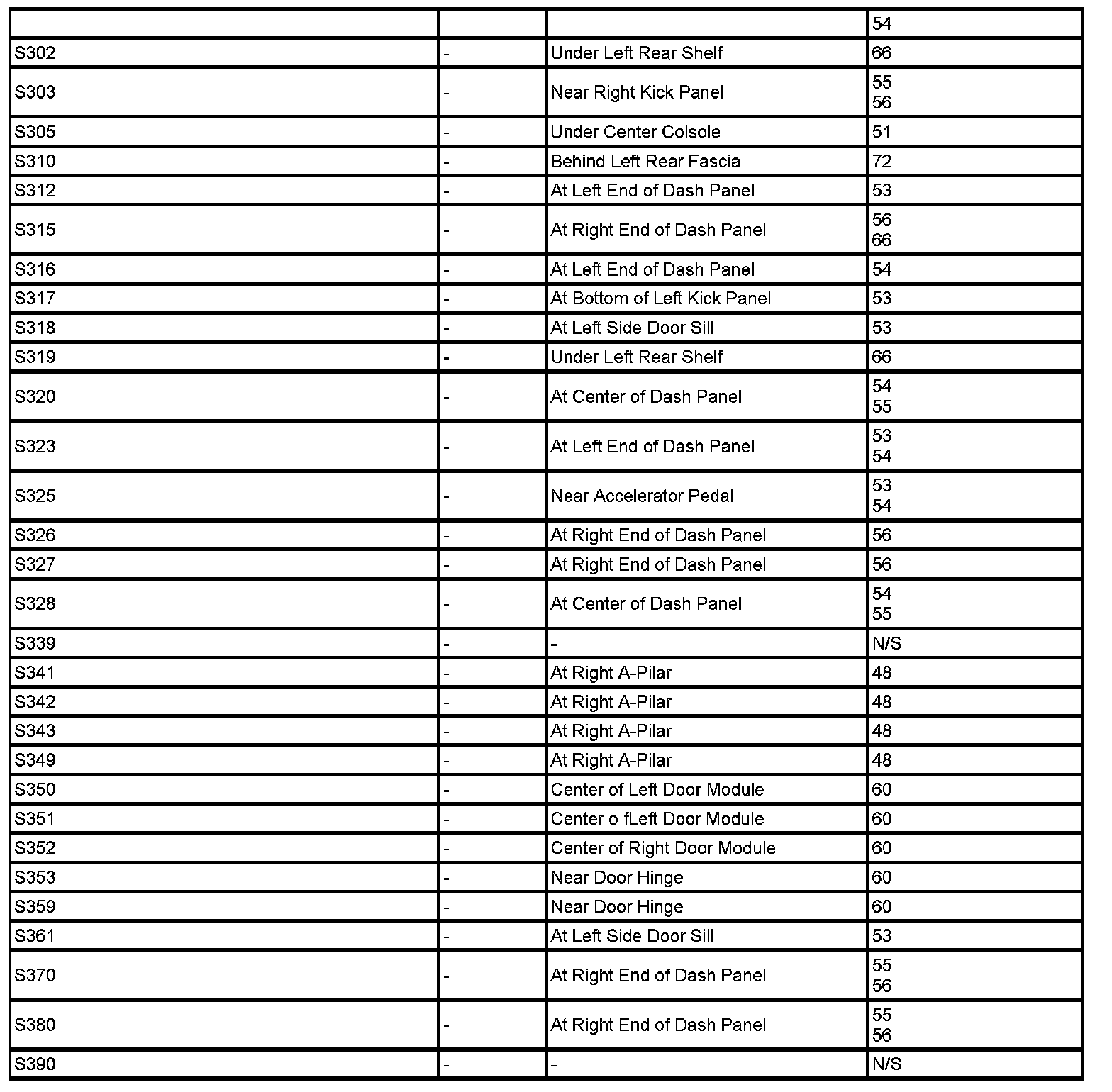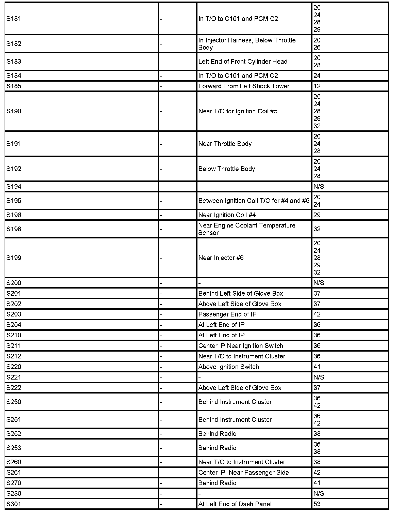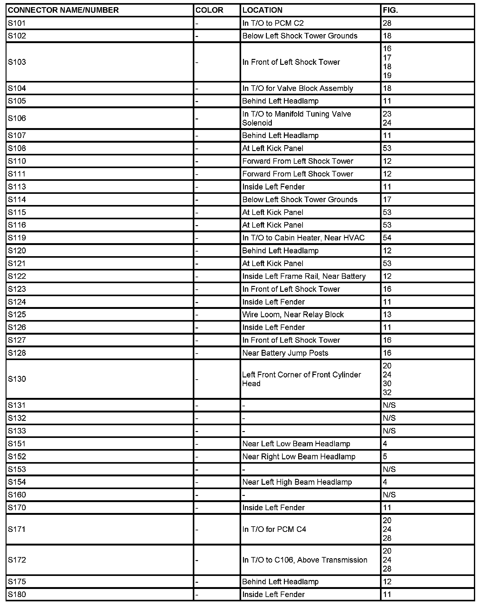 If a link on the index chart to a figure is not provided, that means that the connector and/or figure in question does NOT apply to the vehicle model selected.The abbreviation T/O (Take Out) is used in the location column to indicate a point in which the wiring harness branches out to a component.