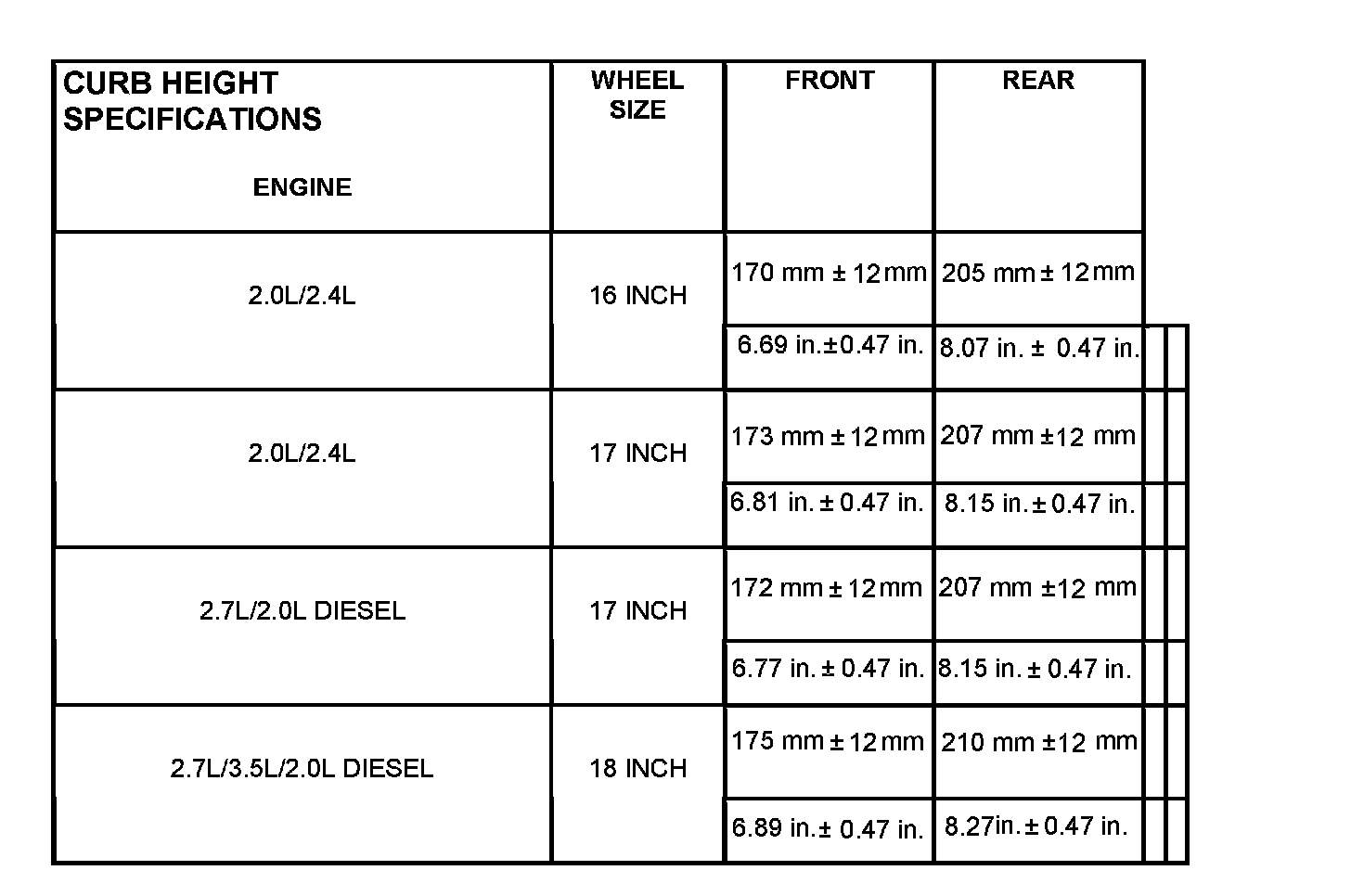 Curb Height Specifications: