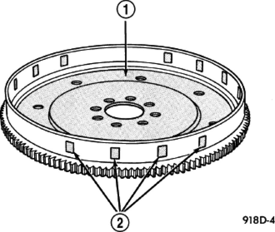 The crankshaft position sensor detects slots cut into the transmission driveplate extension. There are 3 sets of slots. Two sets contains 4 slots, and 1 set contains 5 slots for a total of 13 slots. Basic timing is set by the position of the last slot in each group. Once the Powertrain Control Module (PCM) senses the last slot, it determines crankshaft position (which piston will next be at TDC) from the camshaft position sensor input. The 4 pulses generated by the crankshaft position sensor represent the 69°, 49°, 29°, and 9° BTDC marks. It may take the PCM one engine revolution to determine crankshaft position.