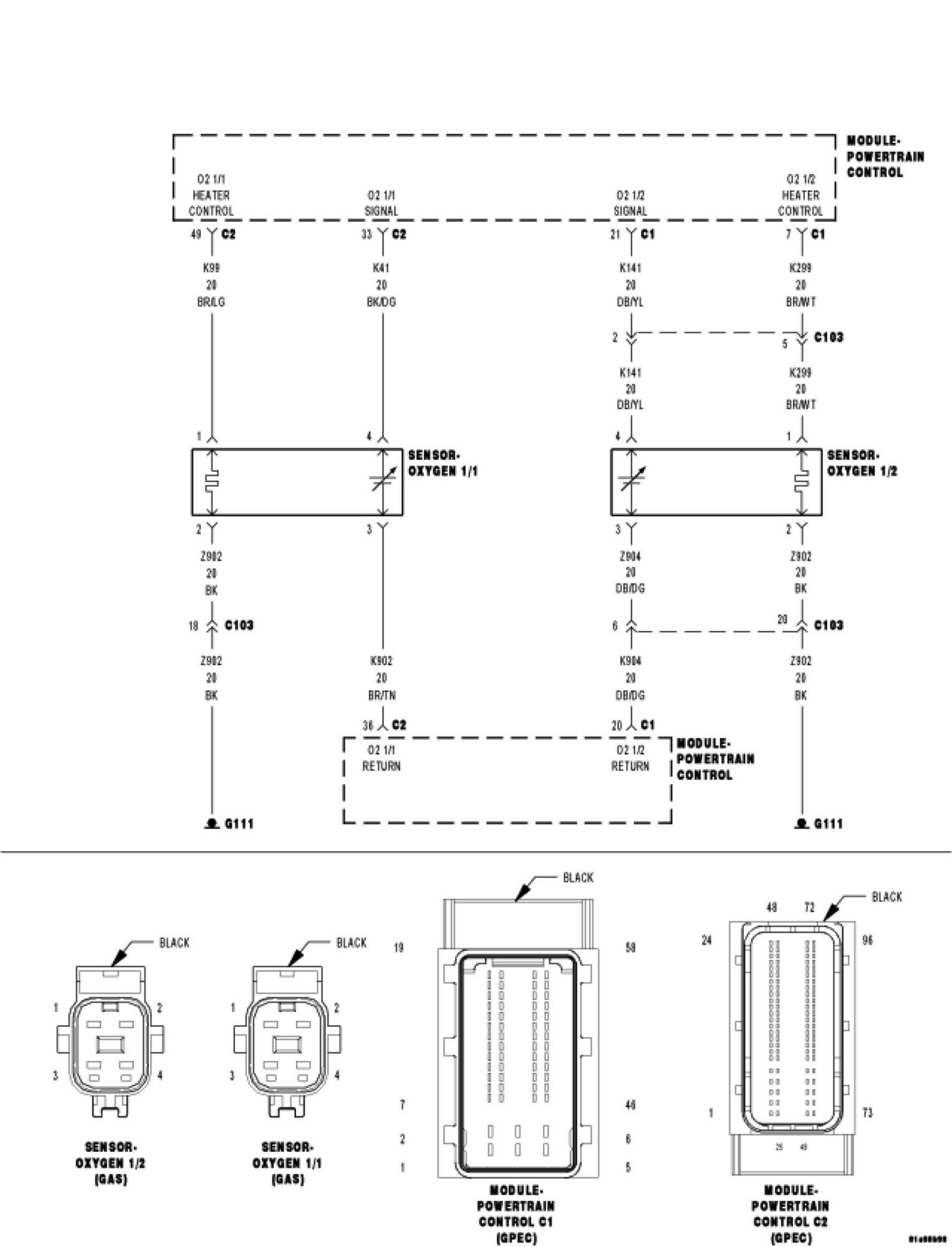 Using the wiring diagram/schematic as a guide, inspect the wiring and connectors between the O2 sensor and the PCM.