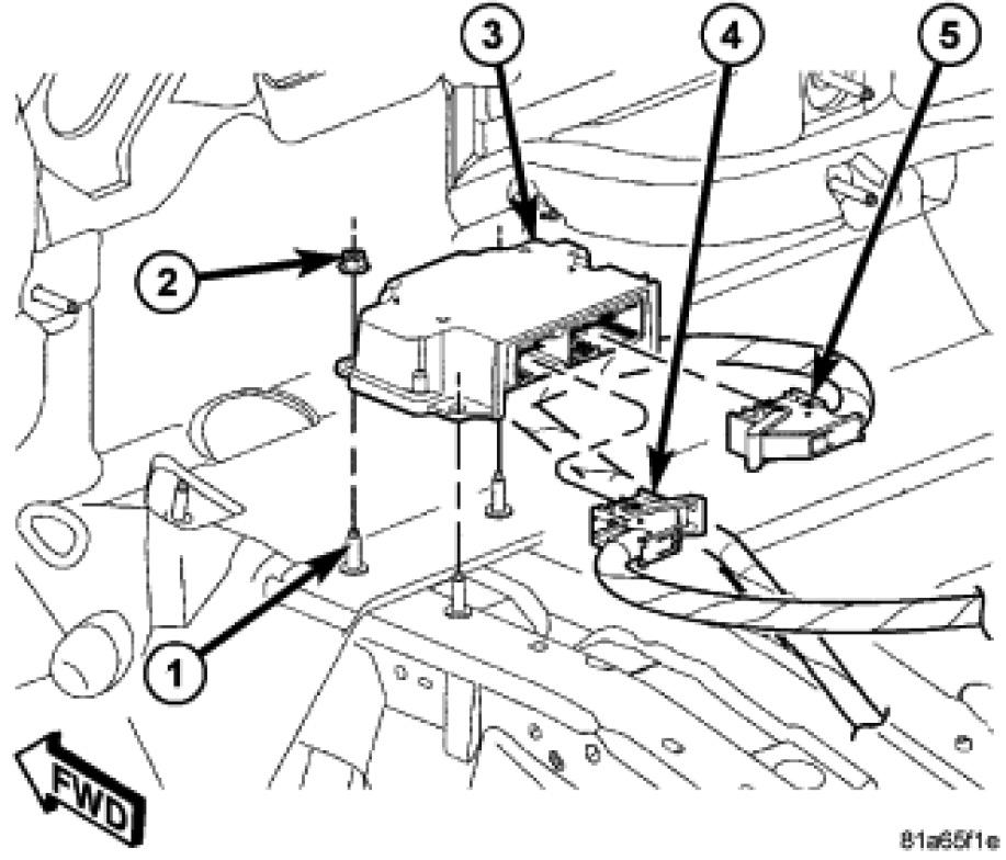 2. Position ORC (3) (arrow pointing forward) on the console floor bracket and mounting studs (1).