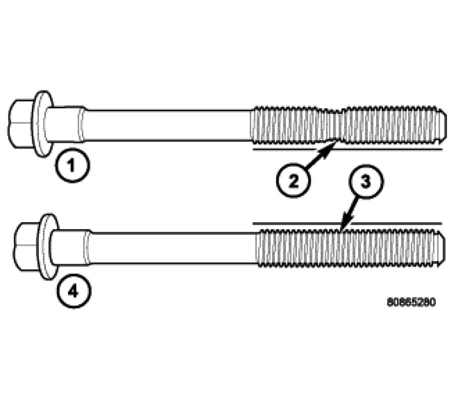 NOTE: The Cylinder head bolts should be examined BEFORE reuse. If the threads are necked down, the bolts should be replaced.