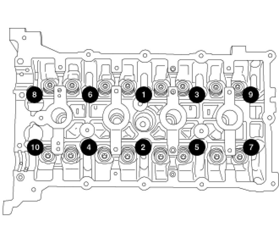 NOTE: Ensure cylinder head bolt holes in the block are clean, dry (free of residual oil or coolant), and threads are not damaged.