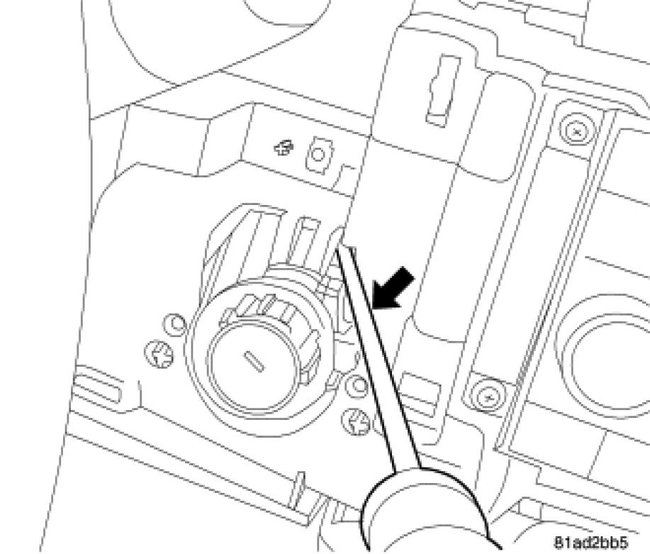 10. Use a thin screw driver and unclip ignition switch from mounting position. Push switch back to remove.