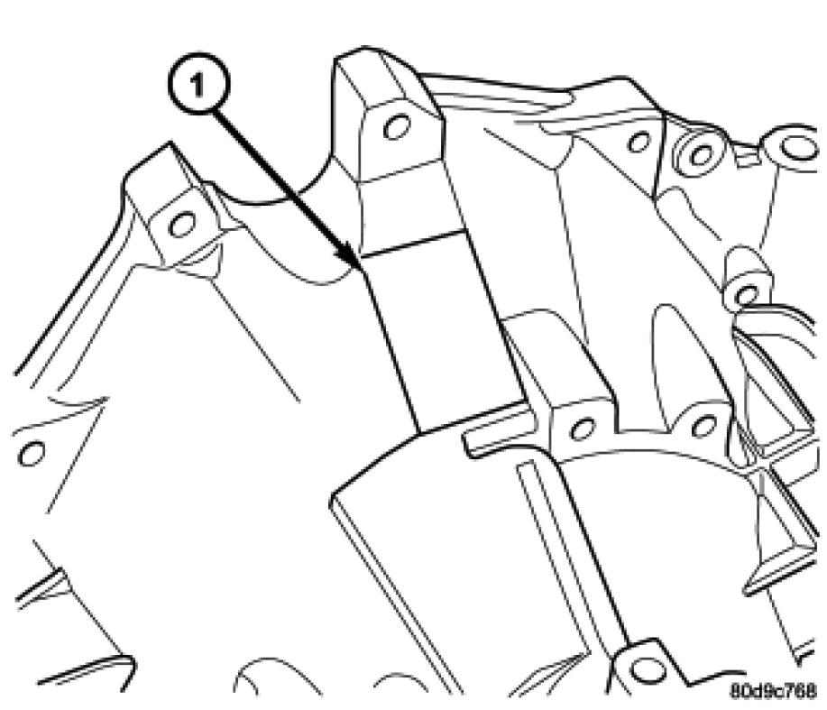 The 40TE transaxle is identified by a barcode label (1) that is fixed to the transaxle case.