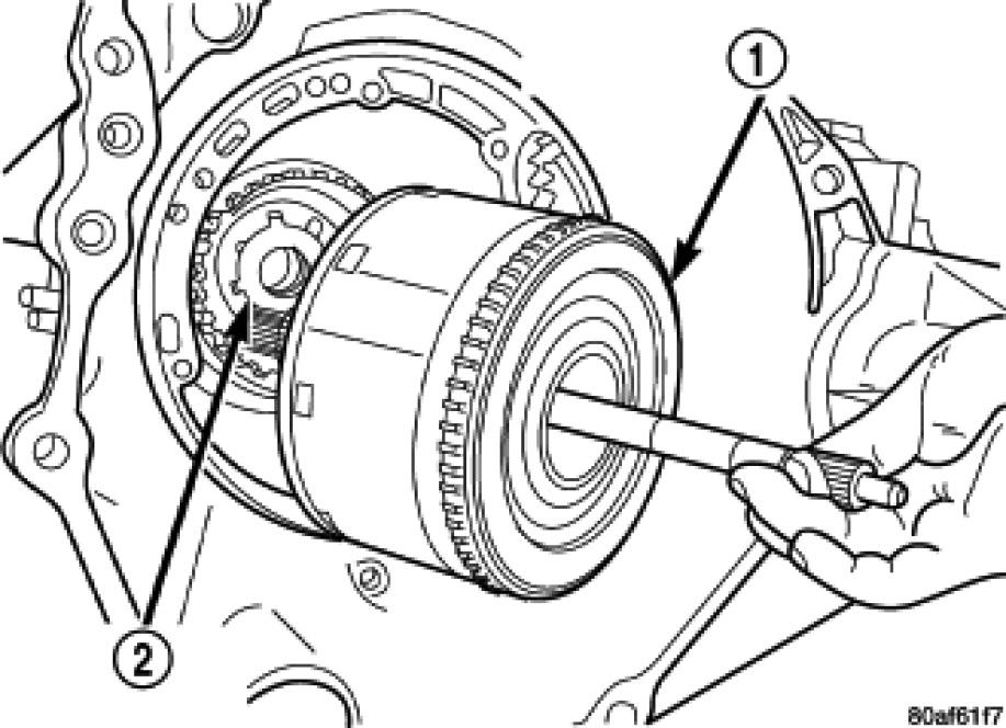51. Install 2/4 clutch return spring (2) into transaxle.