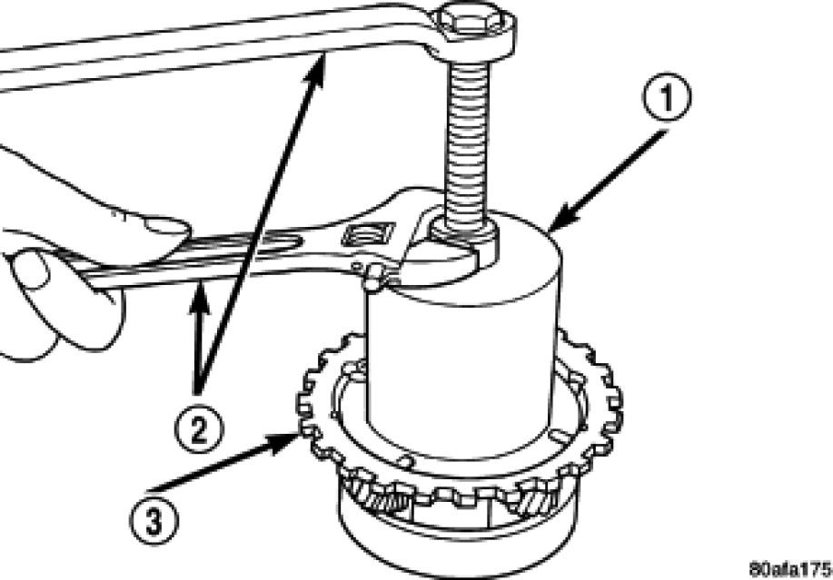 52. Bend output gear retaining strap (1) ears flat to allow bolt removal.