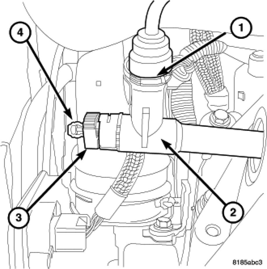 7. Crack open the bleeder valve (3).