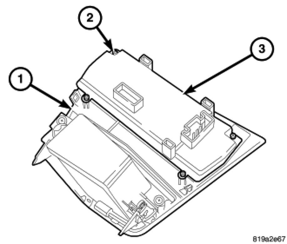 1. Position the A/C-heater control (3) onto the back of the console bezel (1).
