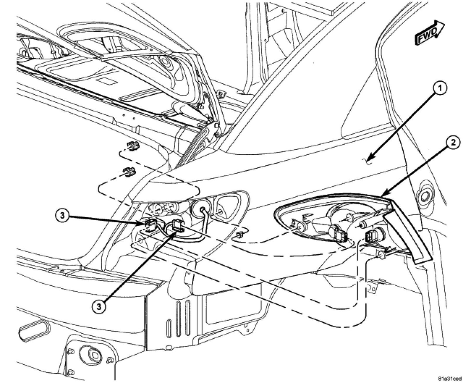 2. Connect wire connector (3) to back of tail lamp.