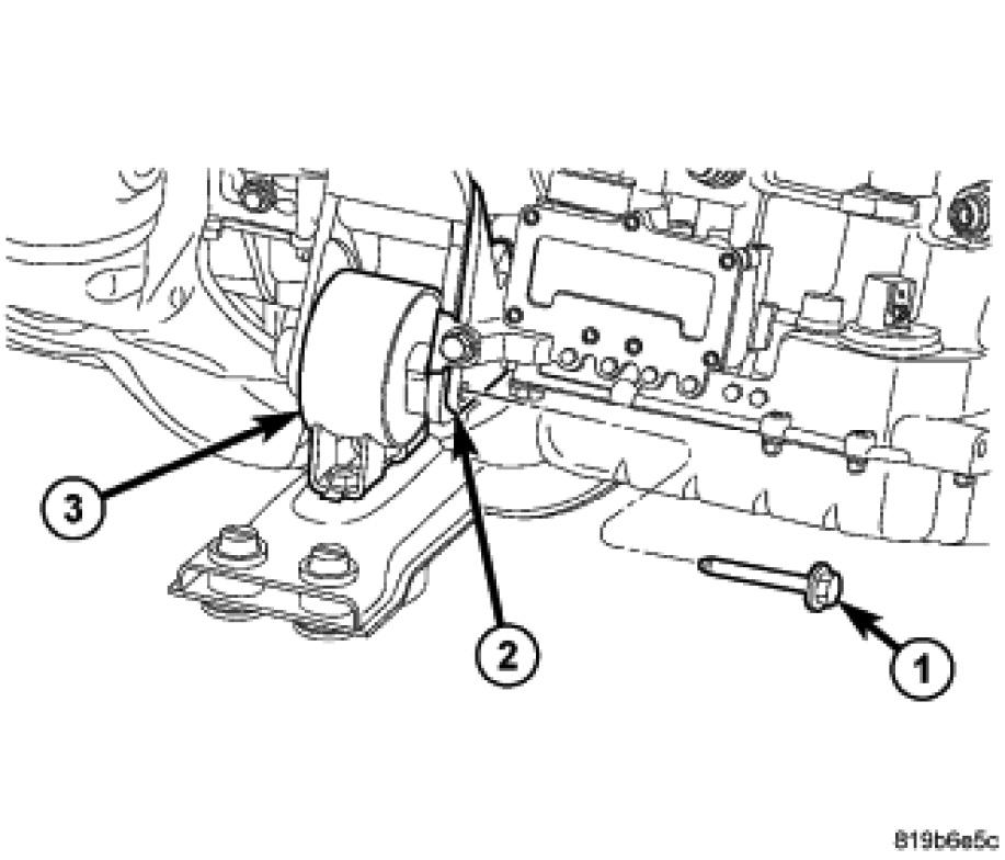 11. Install mount through bolt (1) and tighten to 47 Nm (35 ft. lbs.).