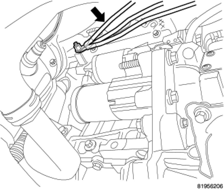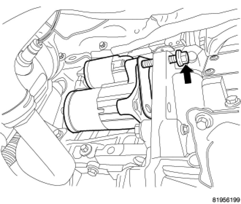 3. Start starter middle and lower mounting bolts