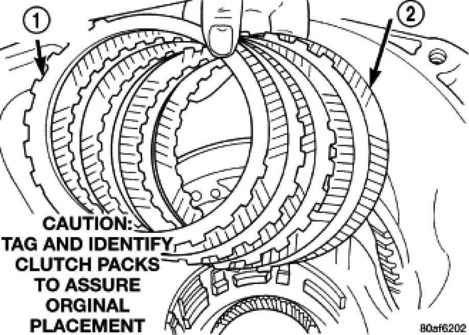 47. Install 2/4 clutch pack (1, 2).