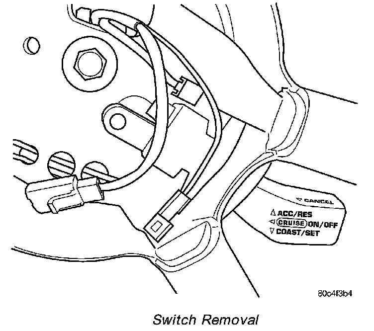 The speed control switch is mounted in the steering wheel and wired through the dock spring device under the airbag module.