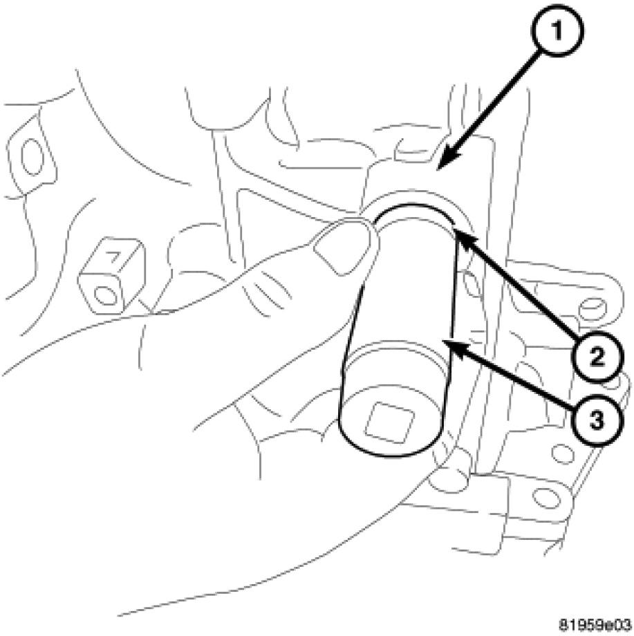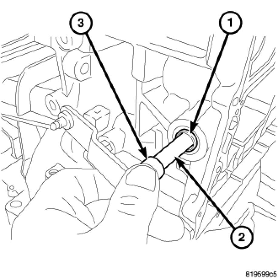 1. Install a new manual lever oil seal (2) using socket (3).