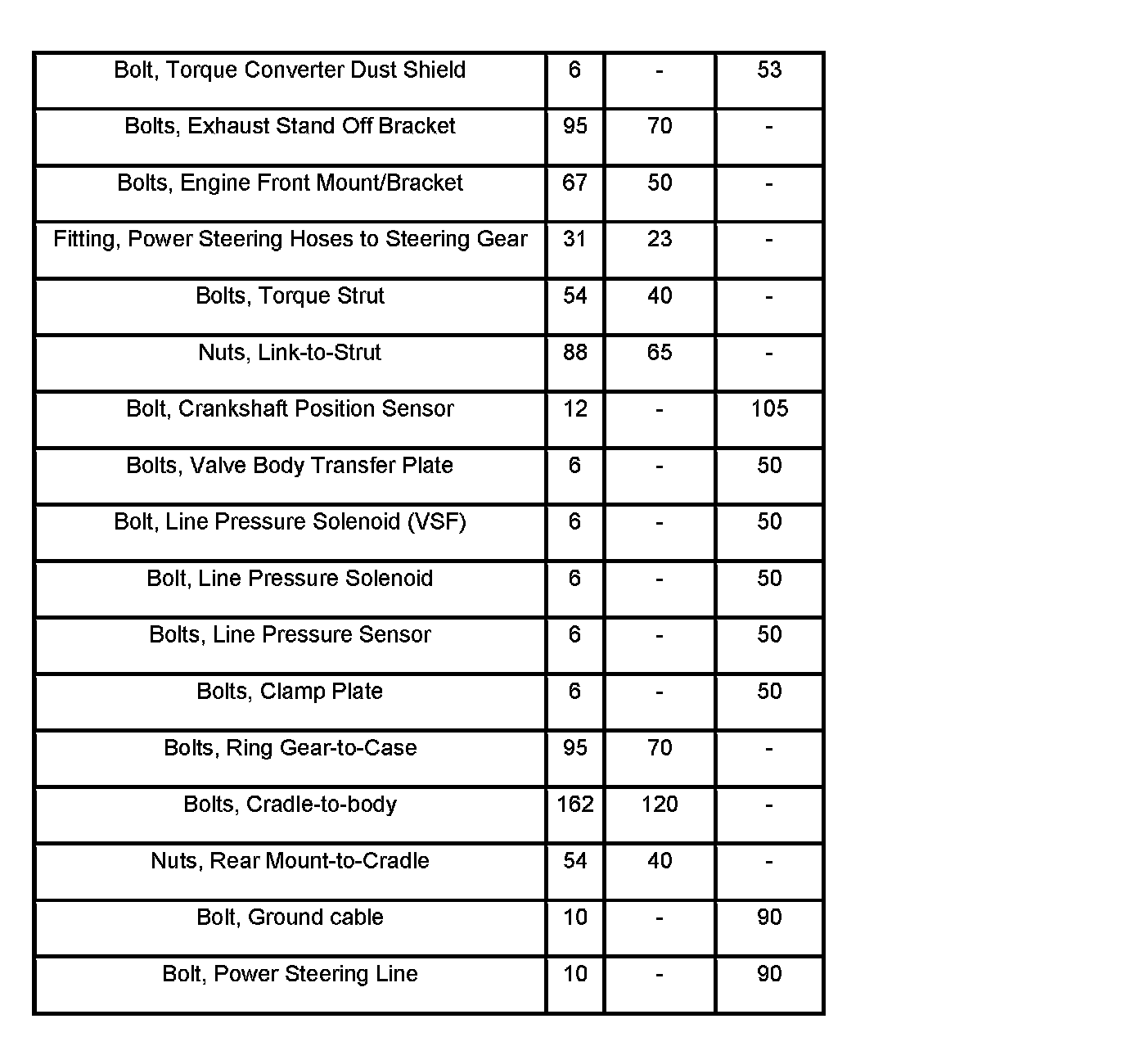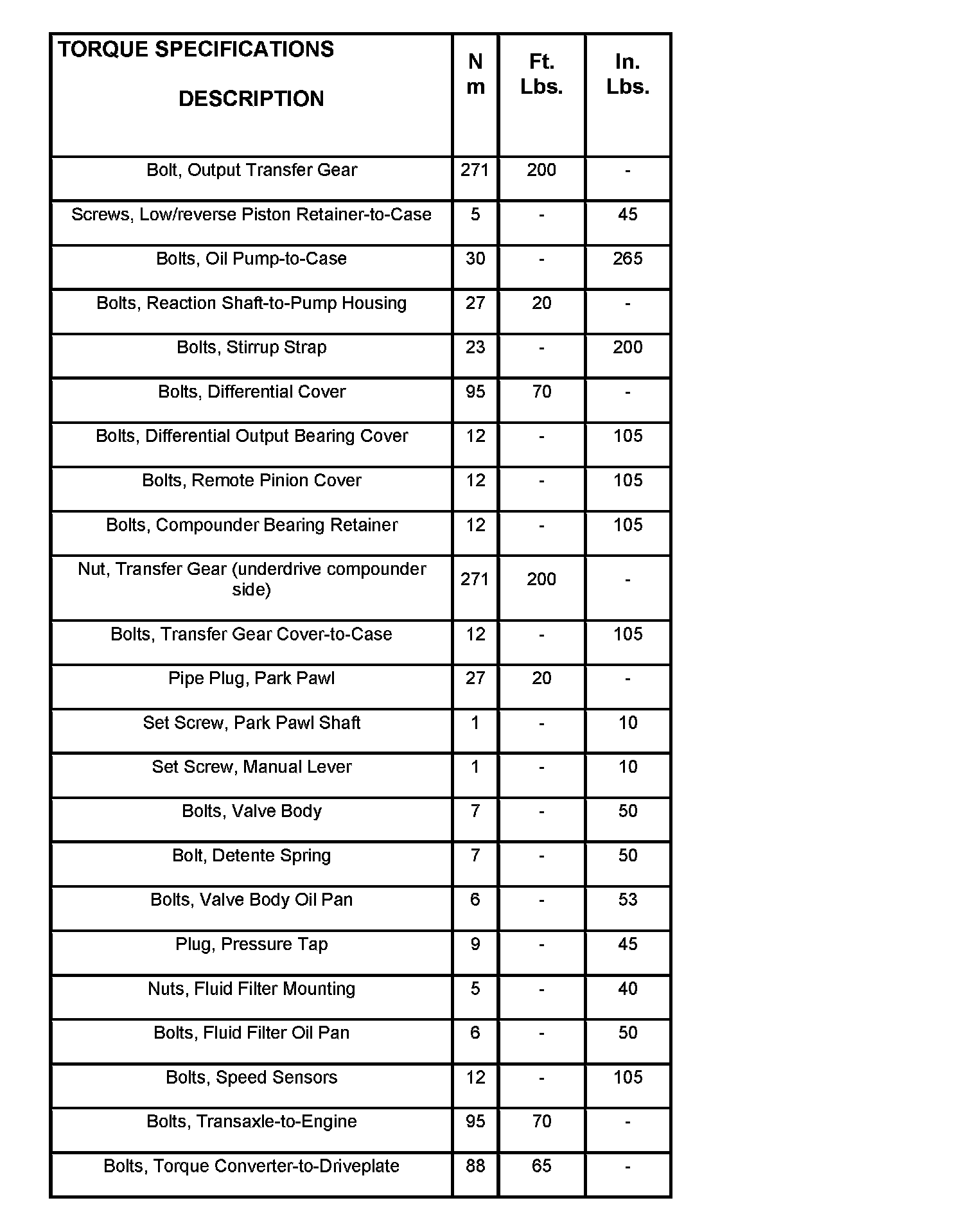 Torque Specifications (Part 1):