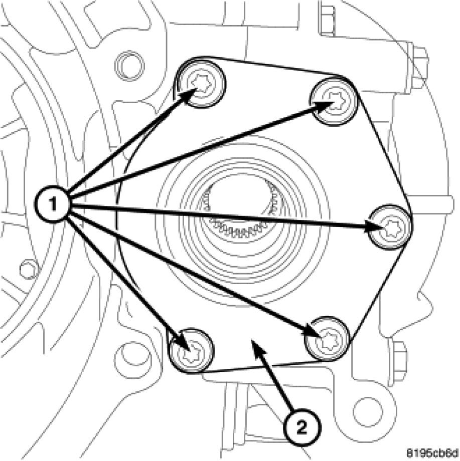 93. Install the transfer gear cover (1), use a bead of MOPAR(R) ATF RTV (MS-GF41).