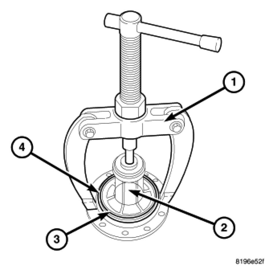 81. Remove the out seal (2), oil singer (3) and the small bearing cup (4).