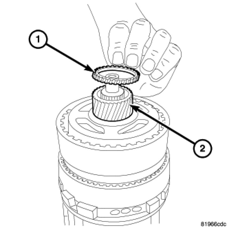 45. Install the planetary gear set / output hub (1) onto the direct clutch.