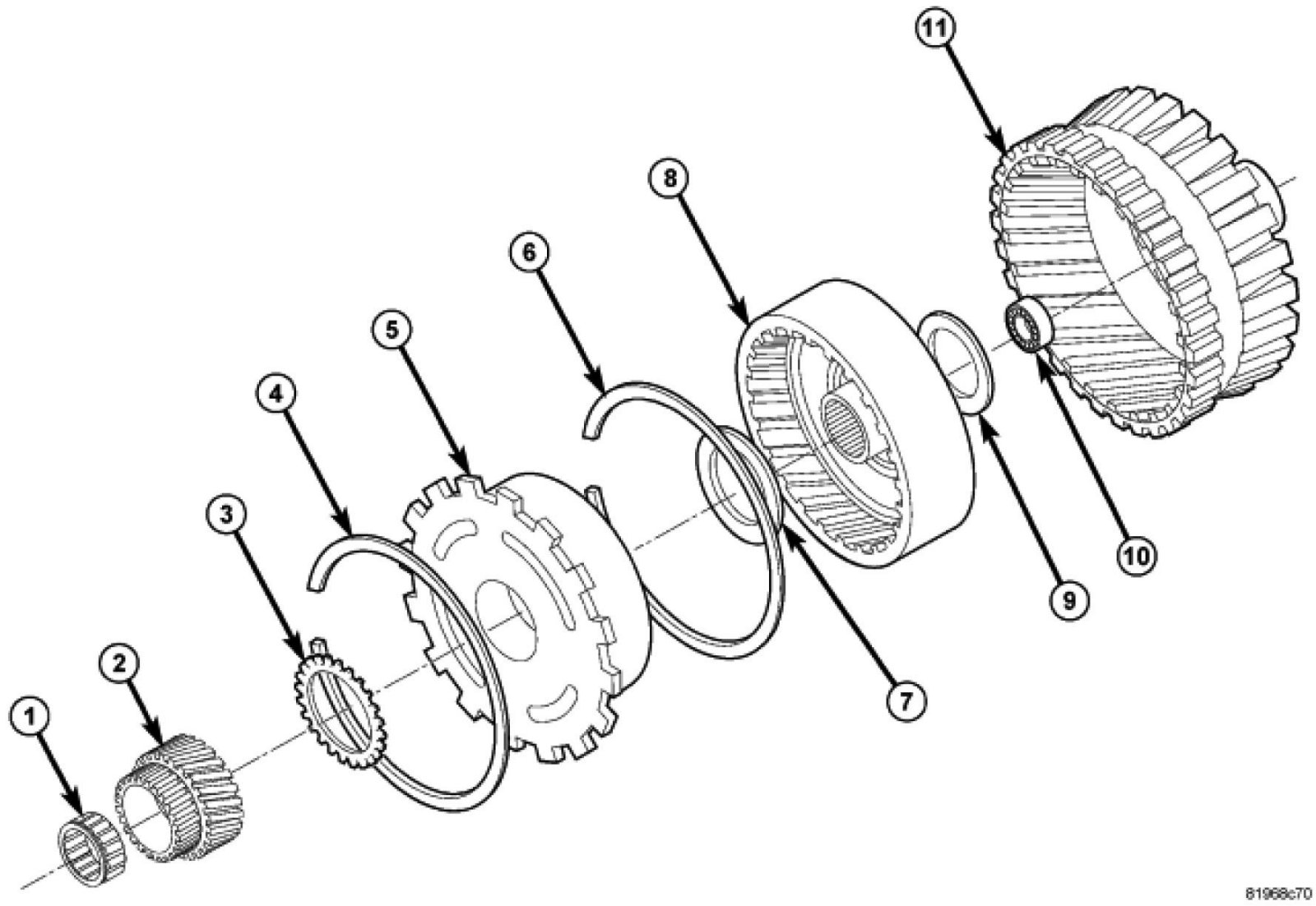 41. Install the snap ring (6) that holds the annulus gear.