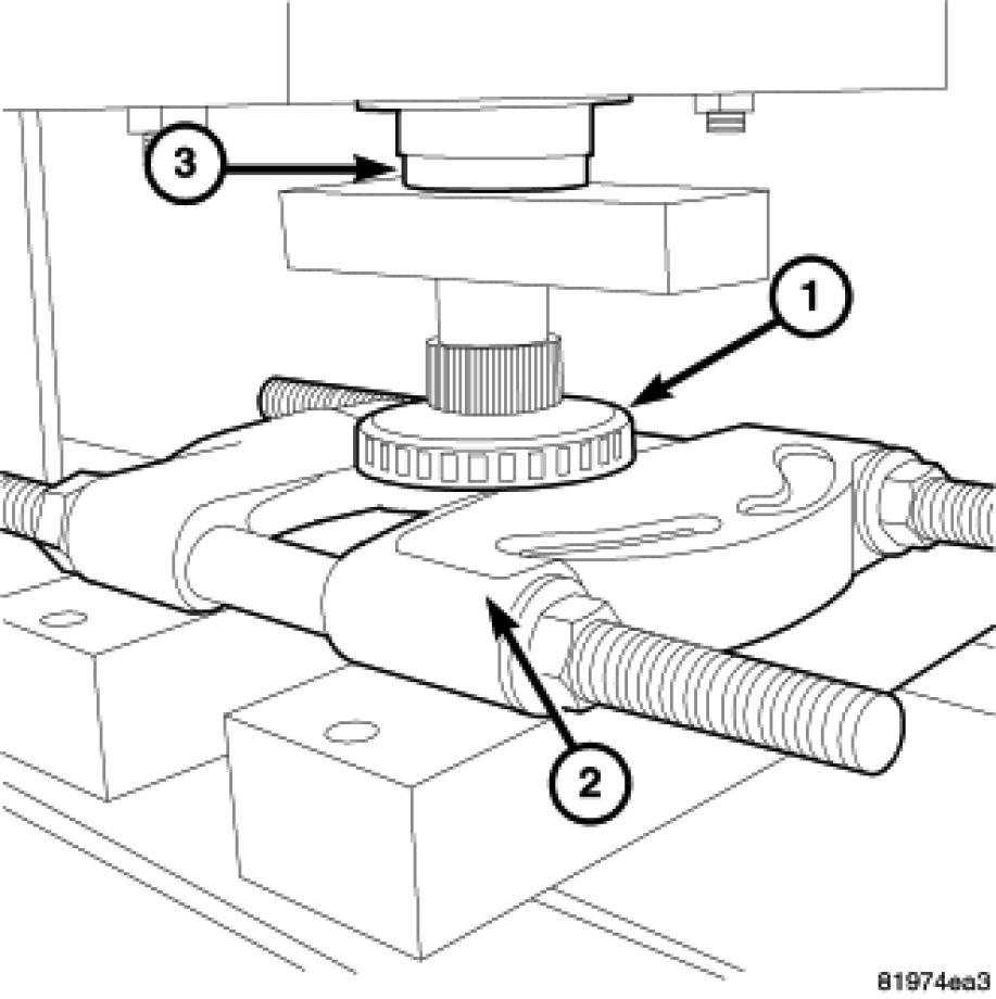 30. Using Bearing Splitter 1130 (2) and a press (3) remove the underdrive compounder bearing.