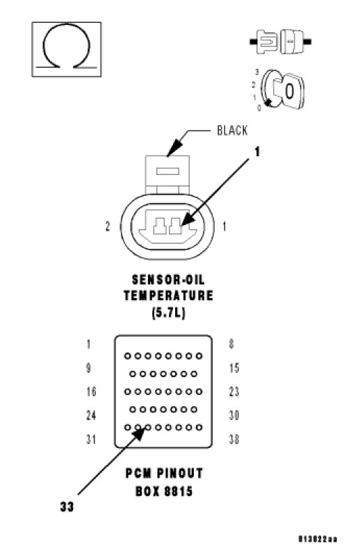 Using the wiring diagram/schematic as a guide, inspect the wiring and connectors between the Engine Oil Temperature Sensor and the Powertrain Control Module (PCM).