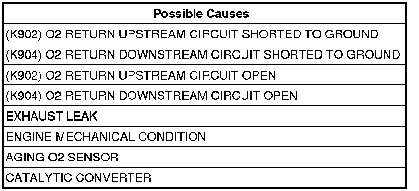 - Repair the short to ground in the (K904) O2 Return Downstream circuit.