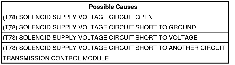 - Repair the (T78) Solenoid Supply Voltage circuit for an open.