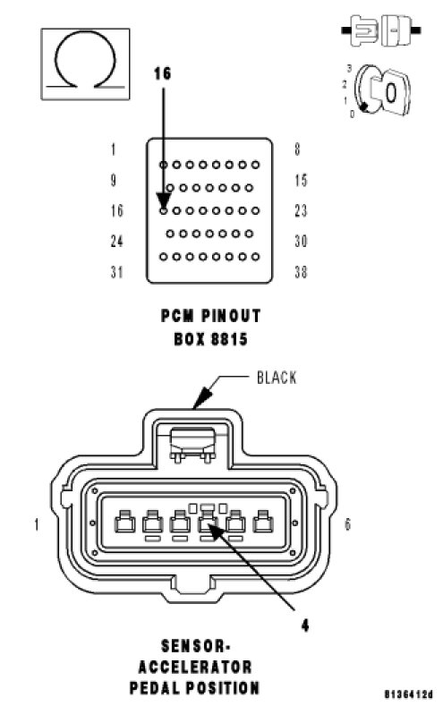 Using the wiring diagram/schematic as a guide, inspect the wiring and connectors between the Accelerator Pedal Position Sensor and the Powertrain Control Module (PCM).
