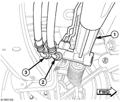 11. 5.7L/6.1L Engines - Install pressure hose (2) to pump (1). Tighten pressure hose tube nut to 47 Nm (35 ft. lbs.).
