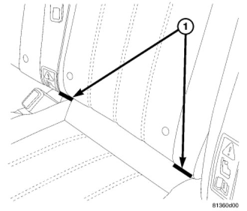 The lower anchors (1) are permanently mounted to the rear floor pan beneath the seat. These anchors are also constructed from a heavy-gauge steel wire loop welded to the floor pan. They are each accessed from the front of their respective seats, at each side where the seat back meets the seat cushion. These lower anchors cannot be adjusted or repaired and, if faulty or damaged, they must be replaced as a unit.