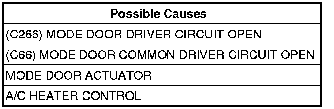 If the (C266) Mode Door Driver circuit or the (C66) Mode Door Common Driver circuit is open.