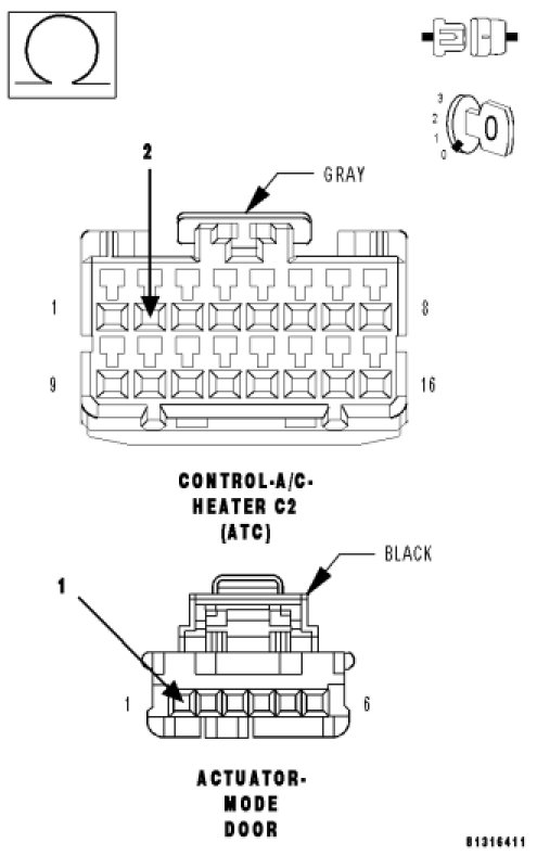 Measure the resistance between the (C266) Mode Door Driver circuit and the (C66) Mode Door Common Driver circuit in the A/C Heater Control C2 harness connector.