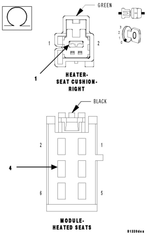 - Repair the open pigtail harness or replace the seat cushion heater element as necessary.