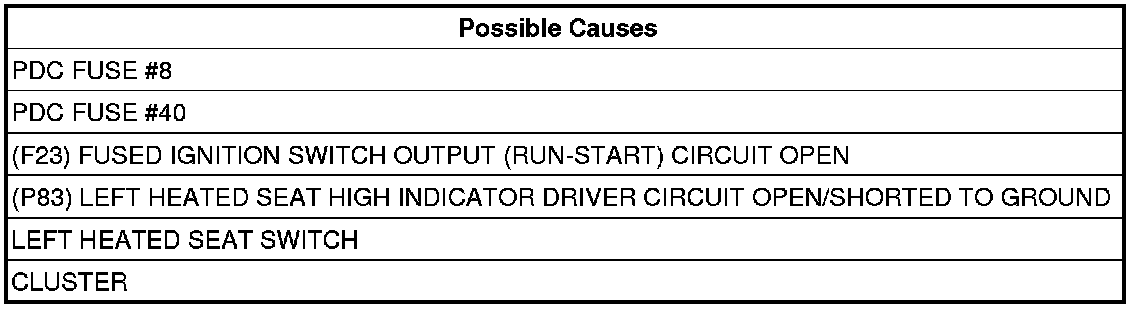 - Repair the (P83) Left Heated Seat High Indicator Driver circuit for a short to ground