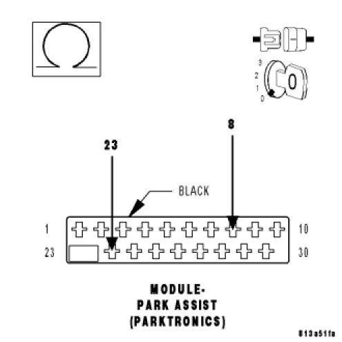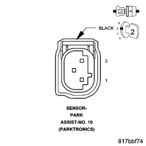 NOTE: The numbering system for the park assist sensors allows for up to ten sensors on the vehicle, six front and four rear. The sensors are numbered in a clockwise manner starting at the left front bumper. The left front sensor (if equipped with front park assist) is the number 1 sensor. The numbering continues in a clockwise direction around the vehicle, so the left rear sensor is the number 10 sensor.