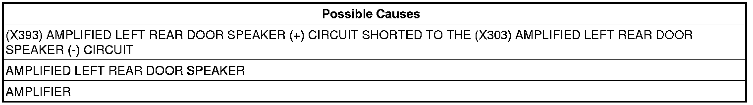 - Repair the (X393) Amplified Left Rear Door Speaker (+) circuit, and the (X303) Amplified Left Rear Door Speaker (-) circuit for a short together.