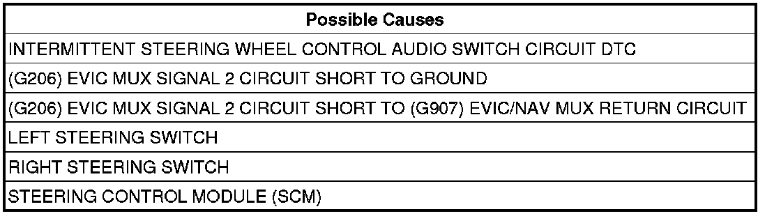 - Repair the (G206) EVIC Mux Signal 2 circuit for a short to the (G907) EVIC/NAV Mux Return circuit.